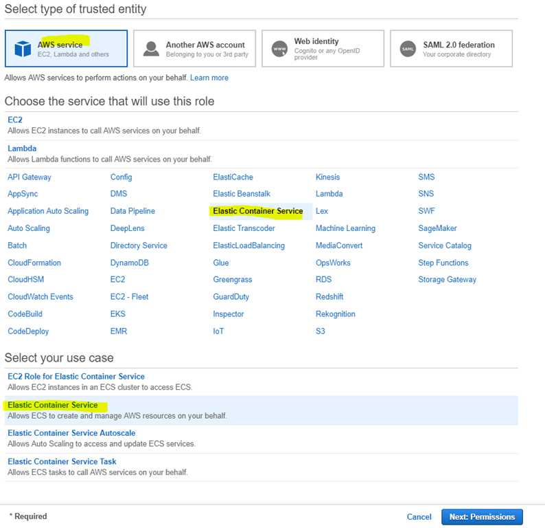 3. Create an IAM (Identity and Access Management like ‘https://your_aws_account_id.signin.aws.amazon.com/console/’) Role for Amazon ECS and an EC2 Instance Profile – policy of roles within Security Groups